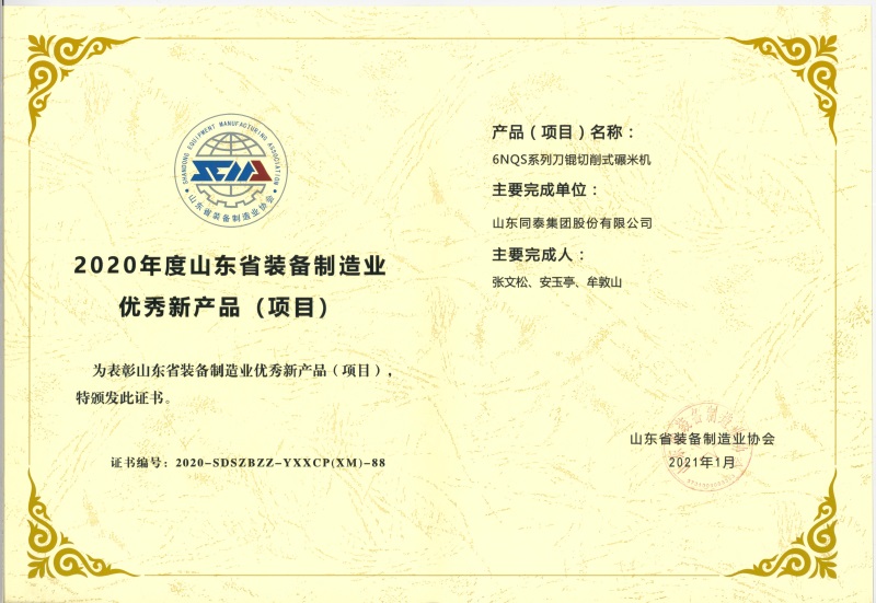 系列刀輥切削式碾米機榮獲山東省裝備制造業