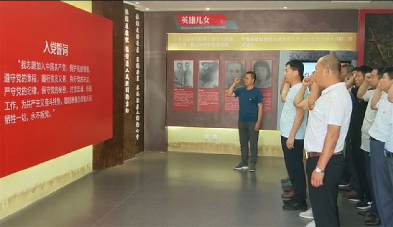 紀(jì)念館內(nèi),全體黨員舉行了“重溫入黨誓詞、銘記初心使命”儀式,面對鮮紅的黨旗,全體黨員舉起右拳,鄭重宣誓。錚錚誓言,激發(fā)了黨員干部立足本職做表率的責(zé)任心和使命感,激勵了廣大黨員堅定愛黨、愛國、跟黨走的理想信念。